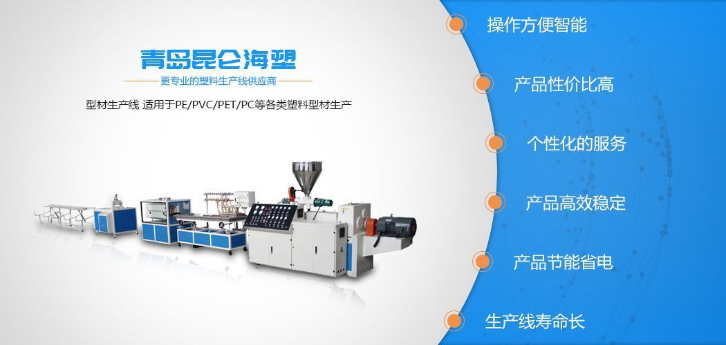 PE型材生產線可生產PE、PP或PVC木塑異型材制品,主要用于托盤,包裝箱板,地板,戶外裝飾材料等,用途十分廣泛